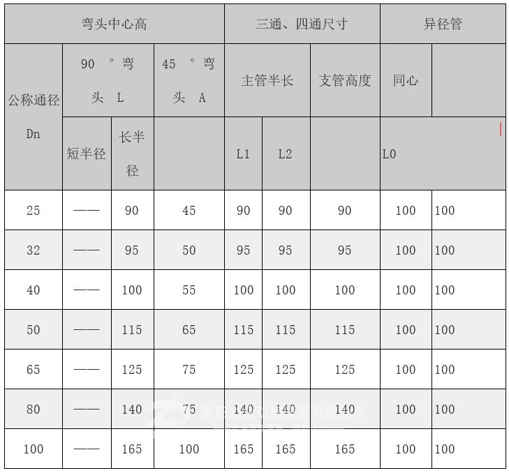 鋼襯四氟彎頭及其它配件常用規格參數: